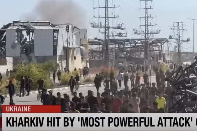 Водночас на цьому тлі ведуча розповідала про “найпотужнішу атаку за три роки на друге за величиною місто України” ракетами, безпілотниками та керованими авіабомбами. Також вона цитувала мера Харкова Ігоря Терехова.