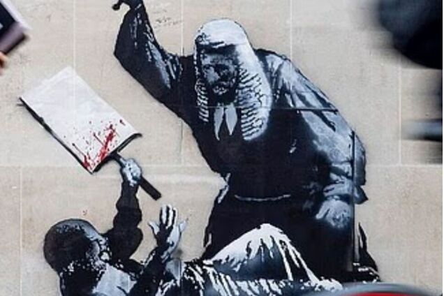 Лондонська поліція відкрила розслідування після появи нового графіті Бенксі на будівлі Королівського суду. Малюнок з’явився у понеділок, 8 вересня, та вже того ж дня його закрили чорним пластиком і металевими огорожами.