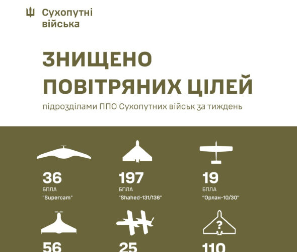ППО Сухопутних військ за тиждень знищило 443 одиниці розвідки та нападу противника.