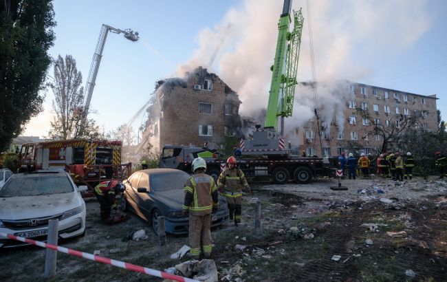Влучила ракета, у підвалі можуть бути люди: нові деталі руйнування 5-типоверхівки у Києві
