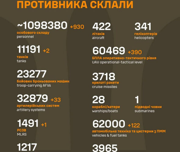 Втрати росіян в Україні перевалили за 1 098 380
