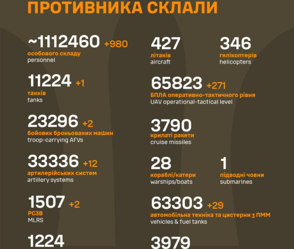 Втрати росіян в Україні перевалили за 1 112 460